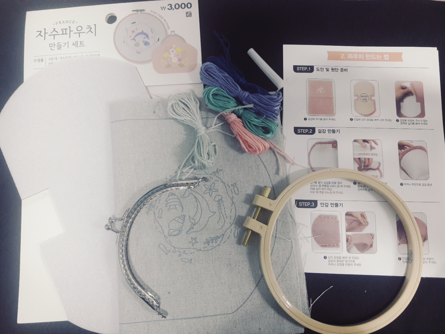 #자수파우치 만들기 세트 3000원으로 #혼자놀기